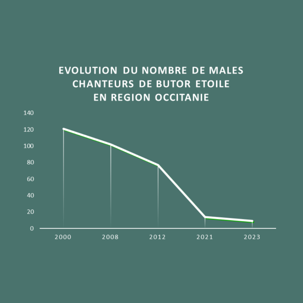 Distribués jusqu’à la fin des années 2000 entre les quatre départements du pourtour méditerranéen, les effectifs de mâles chanteurs de Butors étoilés se retrouvent désormais uniquement cantonnés en Camargue gardoise. Située sur la partie ouest du delta du Rhône, la Camargue gardoise jouit d’une diversité de milieux naturels humides, parmi lesquels l’une des plus grandes roselières d’un seul tenant d’Europe située sur les bords des étangs du Scamandre-Crey-Charnier.